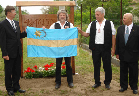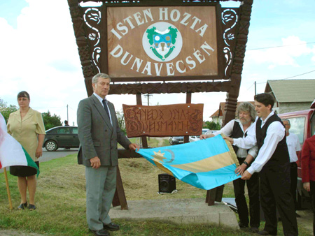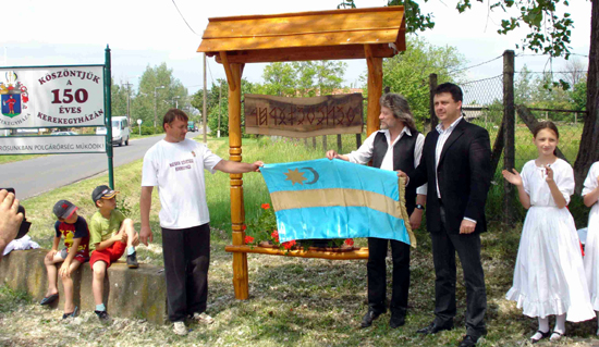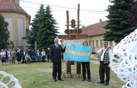 nemzeti lobogót, helyi kezdeményezésre helybéli mesterek faragták, díszítették