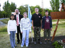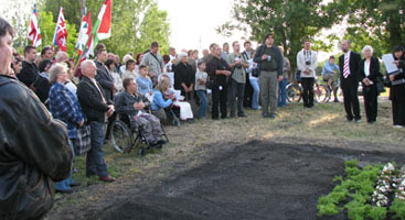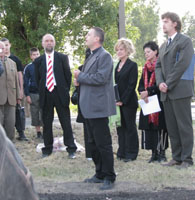 A táblaavatók csoport, első ízben babakocsis csecsemő részvételével |