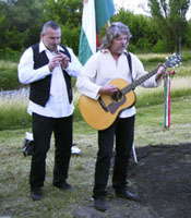 Hegyi Károly zenész-rovásíróval a Szent Korona című dalt énekelve |