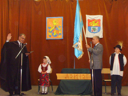 Az avatóünnepségre a művelődési házban rendezett Bezerédj nap keretében került sor, ahol a Forrai Sándor Rovásíró Kör nevében a köszöntőt ezúttal is ifjú Forrai Márton (névrokona Forrai tanár úrnak) mondott és adta át Kovács János polgármesternek a székely nemzeti lobogót. A zászlót és a táblát Ujlaky Tibor református lelkész úr áldotta meg.