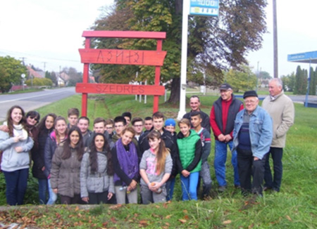 Rovásfeliratos településtábla Szedresen