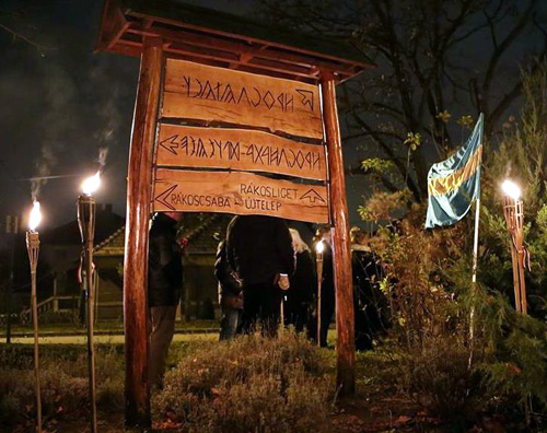 Újabb rovásírásos helységnévtábla Rákosligeten |