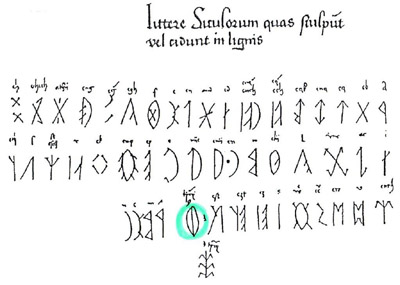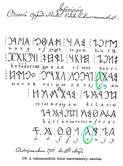diamether is 6 cm. Letters conform to the Magyar rovásírás (runic writing)