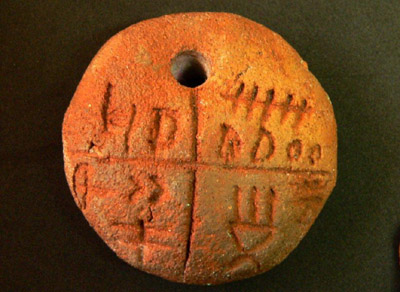 clay disk, that was unearthed in a Neolithic site, with a diameter of 7,3-7,4