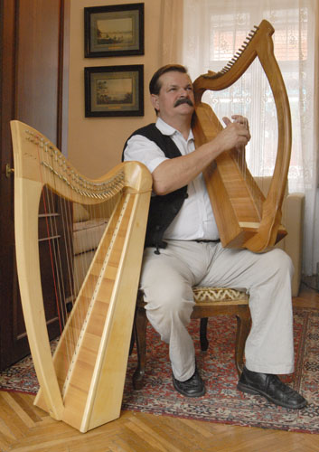 - Nagyobb lenne iránta az érdeklődés, ha kevesebbe kerülne - jelenleg több százezer forint - és nagyobb nyilvánosságot kapna. Az oktatók főleg ír/gael népdalokat tanítanak, de magyar népzene is játszható rajta. Az 50-es években pár cigány muzsikus még használt népi - kampós - harminc húrnál többel is felszerelt hárfát. Napjainkban a Somogy megyei Teskó János kelta hárfa művészt tartom a hangszer kiváló mesterének - vázolja a hárfa keresettségét Kecskés Péter. Ő maga hat évig zongorázott, négy évig a szentendrei Ferences Gimnázium kántoraként orgonázott, billentyűsként megfordult kisebb beat együttesekben is. Középiskolásként már említett testvére mellett, Fodor Ferenctől tanulta el a klasszikus gitározás fortélyait, mielőtt kezébe vette a lantot.