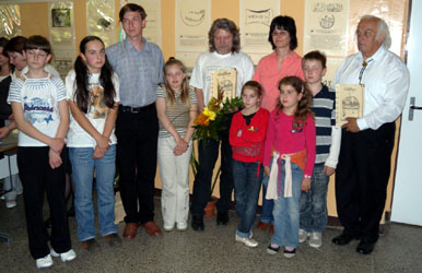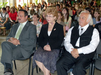 Z. Urbán Aladár Révkomáromban, a 2009-es Felvidéki Rovásírásversenyen a polgármesterrel és képviselő aszonnyal |