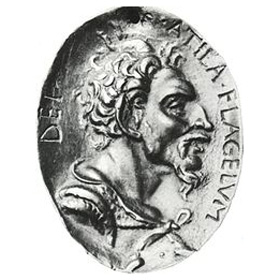 2. Wikipédia: Renaissance medal with the legend,"Atila, Flagellum Dei"