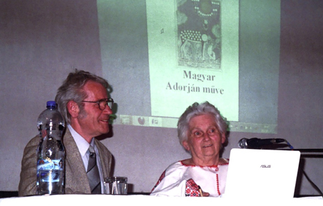 Tomory Zsuzsa előadása, mellette Orbán József 2012. |