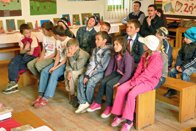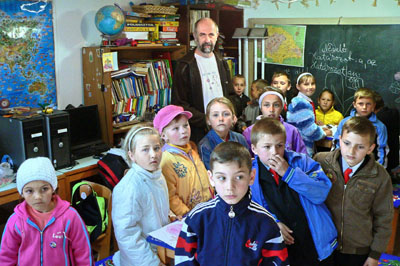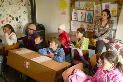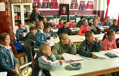 ![]() Tanításon kívüli magyar nyelvű szakköri óra a lészpedi iskolában (háttérben Bartha András) |