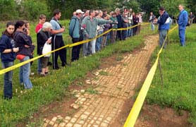 10x5 centiméteres kövecskék ezreiből épített útról és azon szakaszáról, amelyet