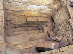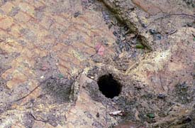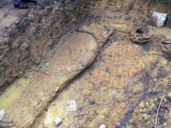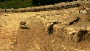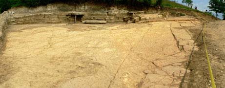 ahol egyelőre csak a kikövezett alapokat ásták ki az egyik oldalon. A szerényebb