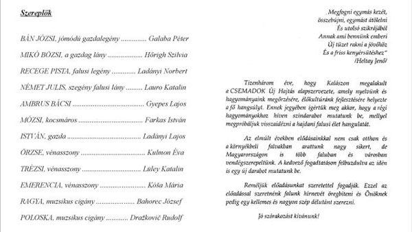 - Kiszálltak hozzánk a Minisztérium Államnyelv Szakosztályától és pénzbüntetést helyeztek kilátásba, ha nem változtatunk rajta. Mi ezt azzal utasítottuk el, hogy ha harminc évig jó volt a korábbi módszer, akkor ezután is. Mert mit kezd a szlovák nyelvű szórólappal az a szlovák, aki a nézőtéren ülve nem érti az előadást, a poénokat? A kultúrát ugyanis nem csak tudni kell, hanem meg is kell élni! - állítja Ladányi Lajos, a csoport tagja, az MKP volt országgyűlési képviselője.