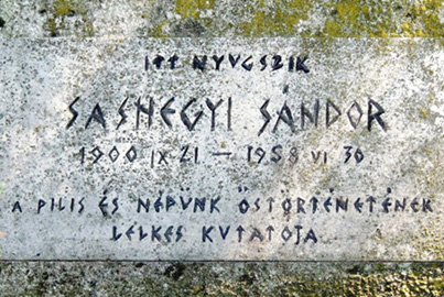 Sashegyi Sándor Pilis és Holdvilág-árok kutató pomázi sírját is kehelytartó szobor őrzi. A fényképeket Vetráb József Kadocsa készítette, köszönöm neki. (3, 4. kép)