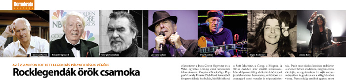 Sok mindent lezárt 2016 a pop/rock világában, hisz a néhány évtizeddel ezelőtti sztárok közül sokaknak ez az év jelentette a végső búcsút. A hatvanas, hetvenes évek meghatározó személyiségei idős korukban is aktívak, sikeresek maradtak, ám egyre többüket hívják a "földöntúli zenekarba".
