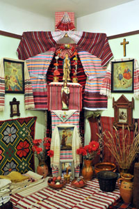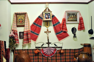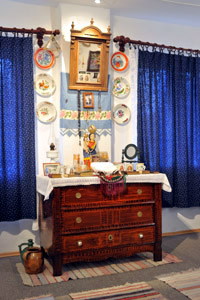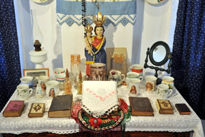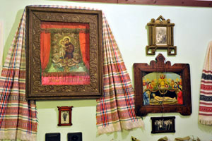 ide tartoznak a hajdani búcsújárások tárgyi emlékei, a lakásokban megjelenő