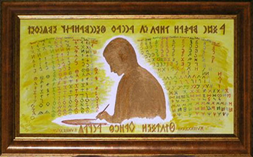 fellelt emlékeit és betűsorait összegyűjtötte, más népek írásával összehasonlította,