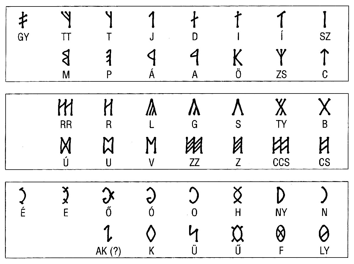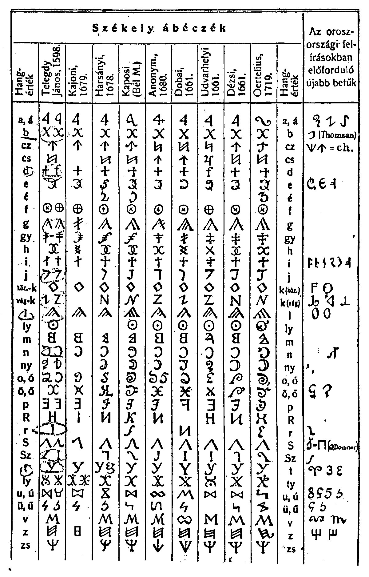 Ősi írásunknak megközelítőleg félszáz betűsora maradt fenn s aki ezeket összehasonlítja, láthatja, hogy nem sokkal nagyobbak az eltérések, mint ha ötven különböző foglakozású és életkorú embert megkérnénk, hogy írja le a latin ábécét, vagy végig kísérjük a latin ábécé fejlődésének útját a Kr. e. 6. századtól.