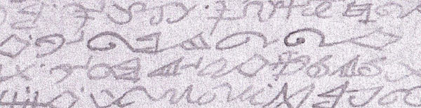 Alulról felfelé haladó rovással is ritkán találkozunk. Az A betűnél már