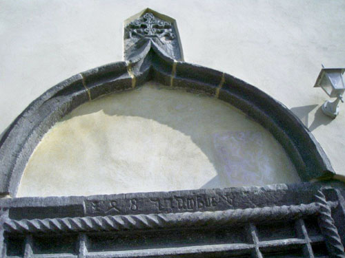 katolikus templom sekrestye ajtajának kőkeretén szintén a Rohonci kódex betűivel