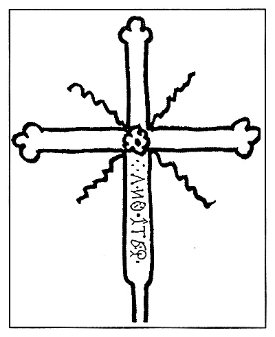 egy keresztben és az azt közrefogó két díszítményben folytatódik, ezek a rovásírás