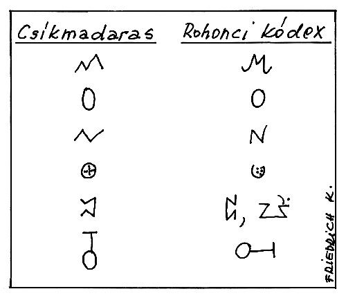 a Rohonci kódex jeleit Némäti Kálmán füzetéből vettem. Ne feledjük, hogy a kódex