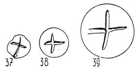 A Torma Zsófia régésznő (1832-1899) által feltárt tordosi újkőkori lelőhelyen több, 5-6 cm. átmérőjű égetett agyagkorong került elő, amelyeken a körosztó kereszt látható, mint mesterjegy.