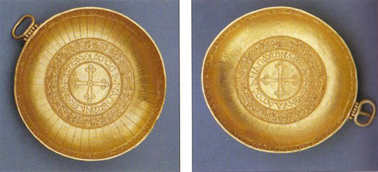 A Nagyszentmiklósi Kincs 9-es, 10-es tálkáin is megjelenik a körosztó kereszt.