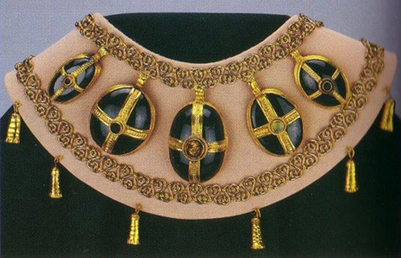 Felsorolásunknak, amely nem a teljesség igényével készült, legszebb darabja a Kiskőrös -Vágóhídi 7. századi leánykasír gallérja és az ezen lévő díszek.