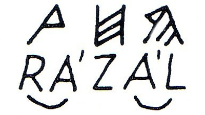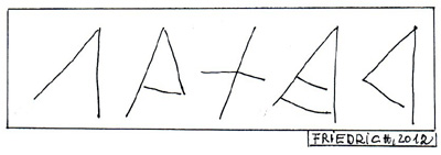 Felbontását a 2. rajzon mutatom. A szöveg a jobb oldali Á betűvel indul. Az összerovás ötletessége gyakorlott rovóra utal. Összerovásnál meg lehet fordítani a jeleket, ezt az Árpád-kori rovás botnaptár LÁZÁR szava is alátámasztja. Látható a 3. rajzon.