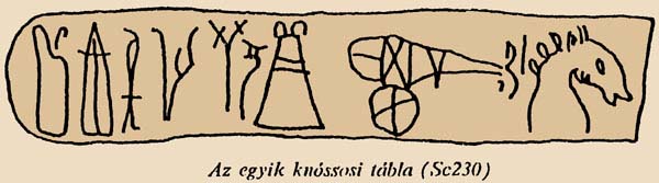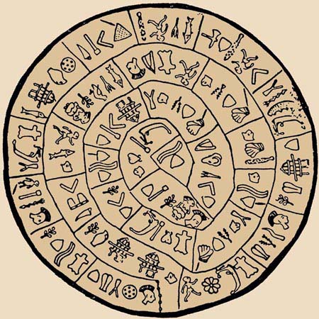 "A rejtélyes phaisztoszi korong. Mindmáig nem tudjuk, hogy az i.e. 1600 tájára keltezett páratlan terrakotta tárgy rábélyegzett jeleinek mi a jelentése. Némelyikük minószi tárgyakra hasonlít, ezért a korong nyilvánvalóan minószi, s a hieroglifák rendeltetése vallási."