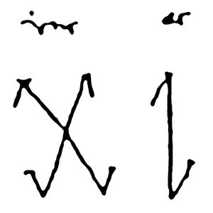 A rajzon valójában 5 rovás K betűt látunk, egy nagyot és a benne lévő 4 kicsit.