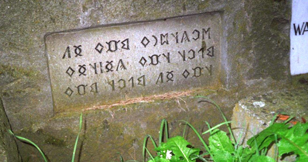 Ez alatt helyezkedik el a rovásfeliratos kőlap, amelyen vagy felújításkor javították át az E betűt H-ra, vagy pedig a Telegdi féle Ö betűt használták az Ö-ző nyelvjárás következtében.