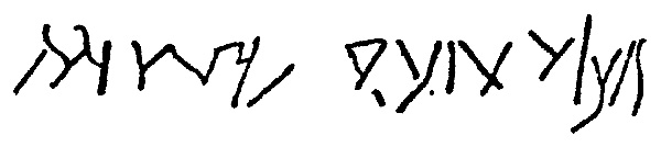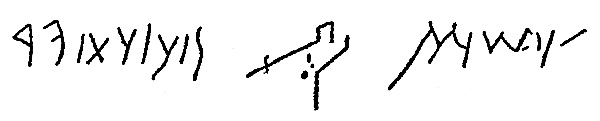 A 7-es rajzon látható két külön jel, jobbról balra: O és Ö hangértékű, valószínüleg névjel, mesterjegy. Párhuzamaik rovásemlékeink között megtalálhatók.