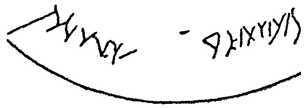 Az 1945 előtti megfejtők és tanulmányozók még láthatták még az edényt, tehát rajzuk valószerűbb, így ezeket használtam fel. Jobbról balra haladó, magyar nyelvű az olvasatom. A harmadik szó a rajzoknak megfelelően változik.