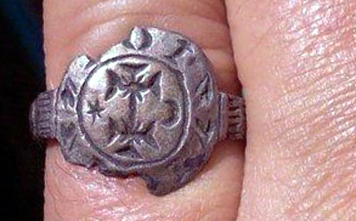 fénykép mutatja, hogy a tulajdonos csak a kisujjára tudja felhúzni a gyűrűt,