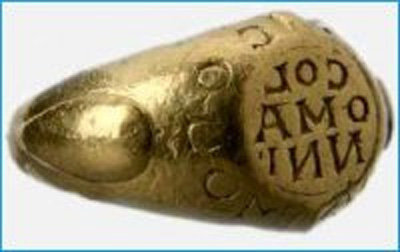 A gyűrű latin betűs felirata, amely a Magyar Művelődéstörténetben nem volt olvasható: ANULUS COLOMANNI REGIS, azaz Kálmán király gyűrűje.