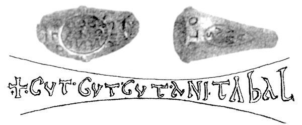 Amennyiben latin betűként olvassuk a gyűrűkarikán belül lévő feliratot, ezt a szöveget kapjuk: GVT GVT GVT ANI. TABAL. "A mondás, több szakértő feltevése szerint, kb. ezt jelenti: Köszvény, köszvény, köszvény, hajtson el Boldizsár."