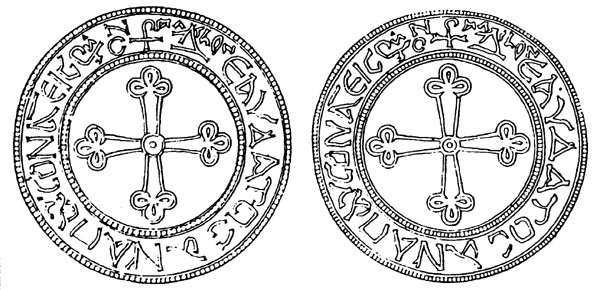 Véleményem szerint Kálmán király gyűrűjén görögös jellegűvé alakított betűkből álló, magyarul olvasható rovásfelirat van. Ennek értelmezéséhez fordítsuk meg a képet úgy, hogy a görög kereszt a jobb kezünk felől legyen.