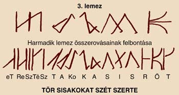 A rovó a K hangok lejegyzésére a több rovásírás-kutató által a mély hangrendű magánhangzókhoz (á, a, o, u) rendelt jelet használta a 2. és 3. lemezen az A és O mellett.