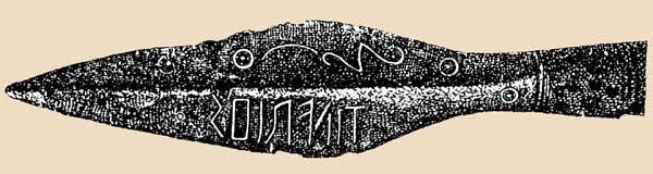 Sebestyén Gyula néprajzkutató A rovás és rovásírás c. könyvében (1909, Püski, 1999) mutatja be a Koweli Lándzsavéget, amelyet 3.-4. századinak határoztak meg és germán runafeliratot hordoz.