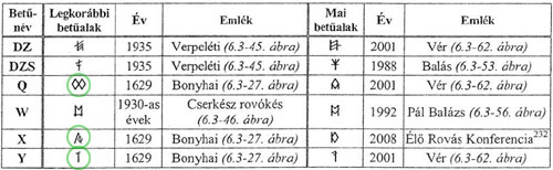 hogy a 17. században keletkezett siménfalvi rovásbejegyzésekben van Q, X